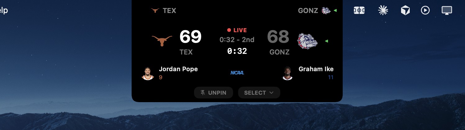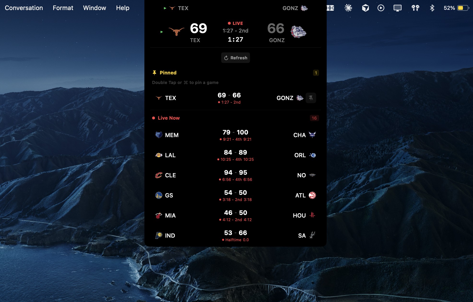Click the menu bar icon. See every game at a glance. Click to expand. That's it.